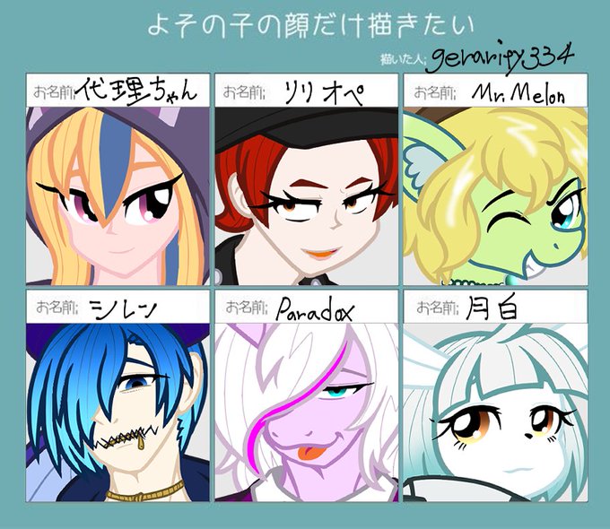 #よその子の顔だけ描きたい 描きたかったので描きました~~~!!!!!!超楽しかったわ~~~~~!!!!!!!個別はスレッド形式で投げていくので~!!!!!!!!!!!!! 「肩から上くらい」を描くといったがあれは嘘だ……