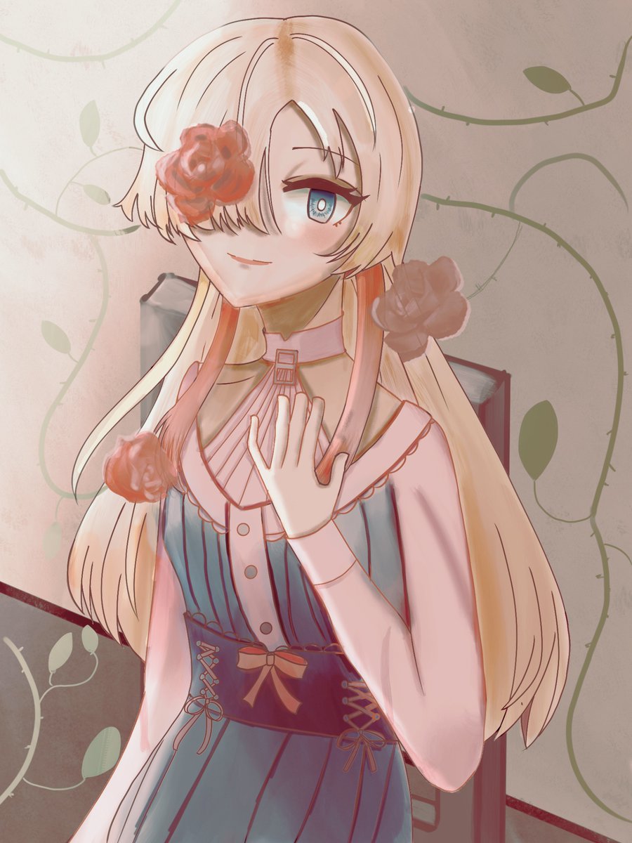 5 15 #ヰ世界情緒美術部 バラ…っぽいなんかの花の中にじょちょちゃんです 23/03/31 18:00
