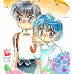 #今月描いた絵を晒そう かなり古い下絵を発掘したので、ちゃんと仕上げて秘密基地でこっそりップしたおバカネタ…(もう一本突貫工事で描いた父の日ネタもアップしてます💦) この二人の小ネタ描くのはやっぱり楽しいです♪