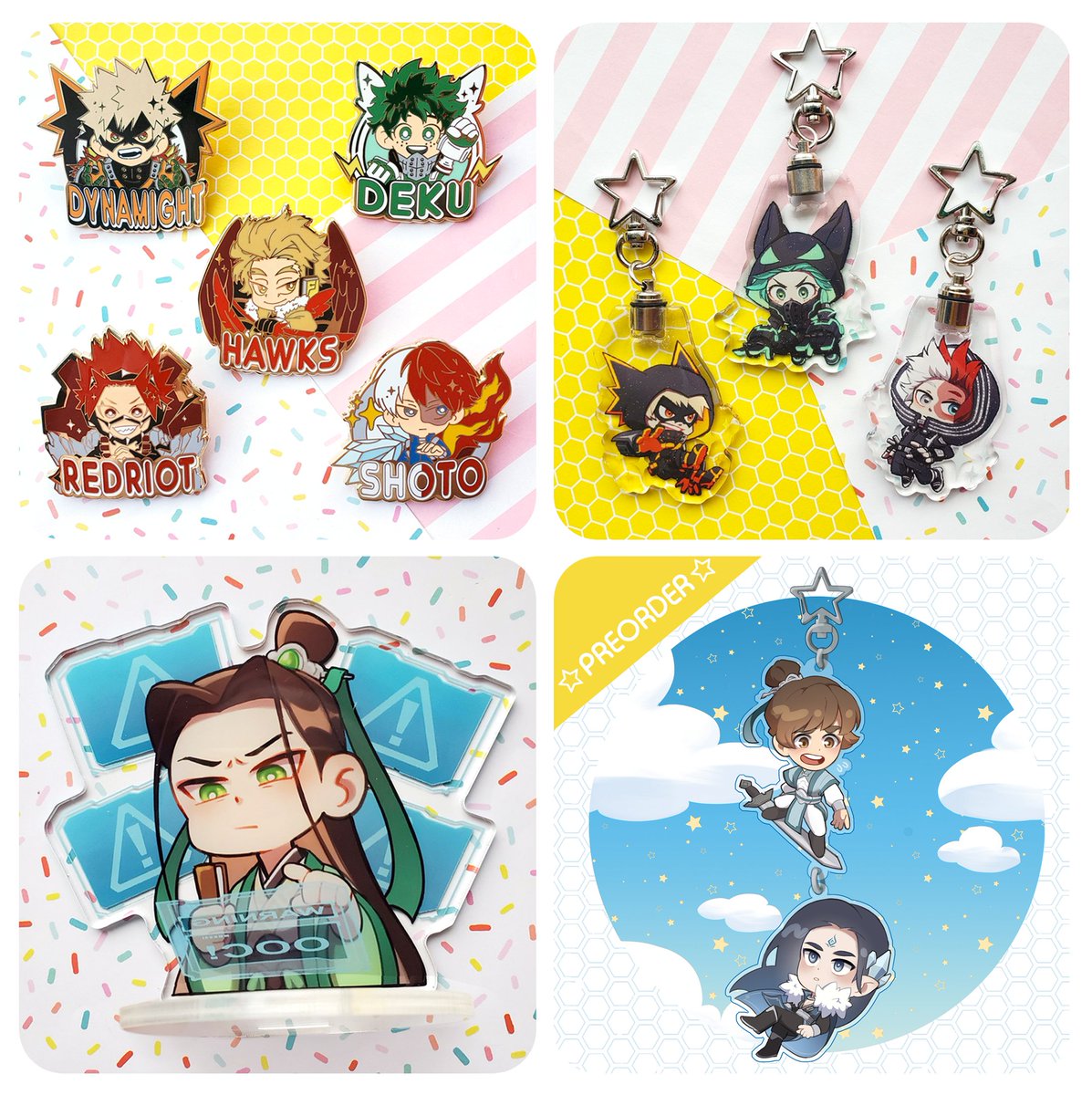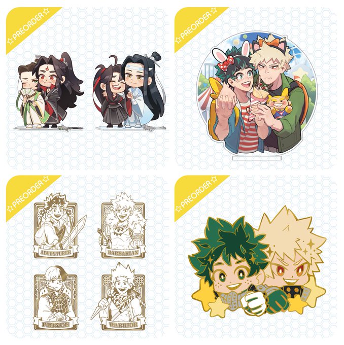 Store open! Limited stock but preorders are open on some items! Link for the store is below and also in bio 👍 Also doing a giveaway so RT+comment on this post for a chance to win either of the BnHA fantasy pin sets or a pair of mxtx sword stands. Giveaway ends Oct 1 11:59 PST!