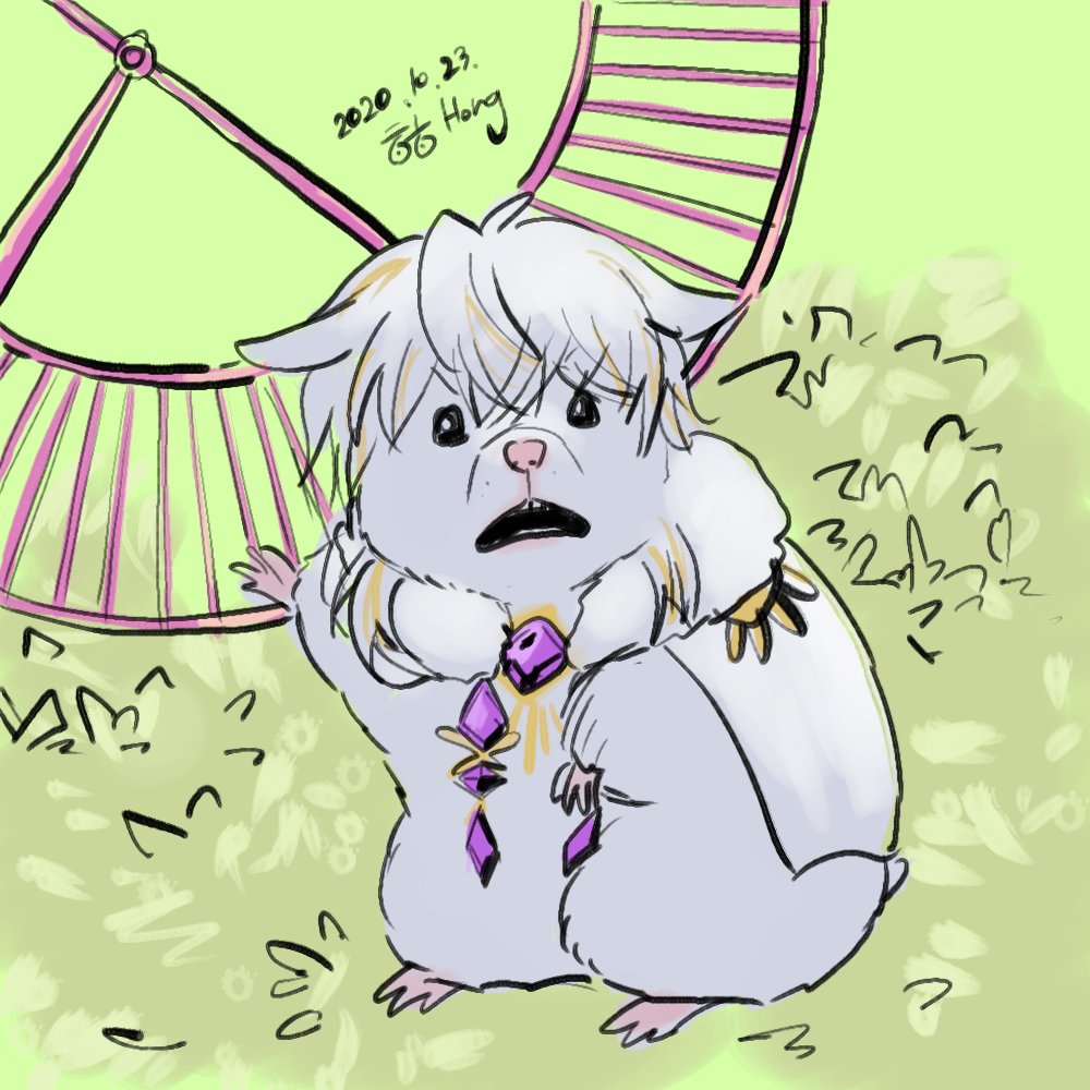 하얗고 털 많고 누군가 설치한 쳇바퀴를 열심히 굴리는 햄스터 카르티스 클라우디스 #로오히 twitter.com/7hu_blue/statu…