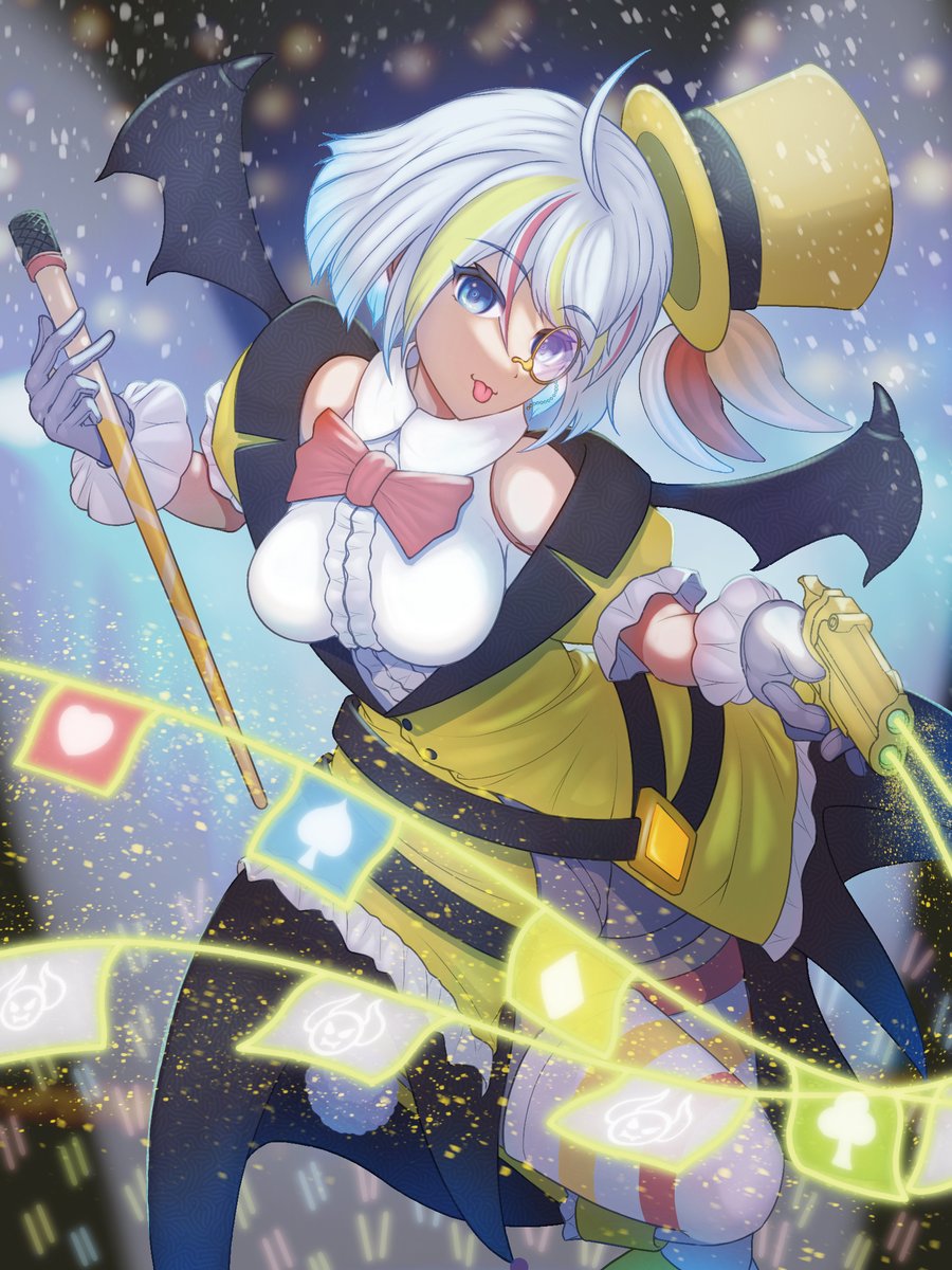所属 : ダイアモンドティアラ 担当 : ♦JOKER 名前 : アイリス・’J’(ジョーカー)・クラウン 設定 : いたずら好きな性格でパフォーマンス重視のマジシャン見習いアイドル。自分も含め「みんなで楽しく」がモットー。「ステージ開演!僕と一緒に皆で楽しんでこー!」 #絵師が本気でトランプを作る企画