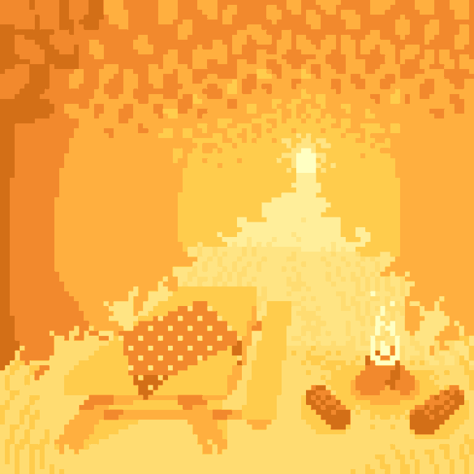 day 3: an autumn grotto #Inktober2019 #inktober #pixelart - for this one I experimented with a very limited color palette, only 8 unique colors used in total!