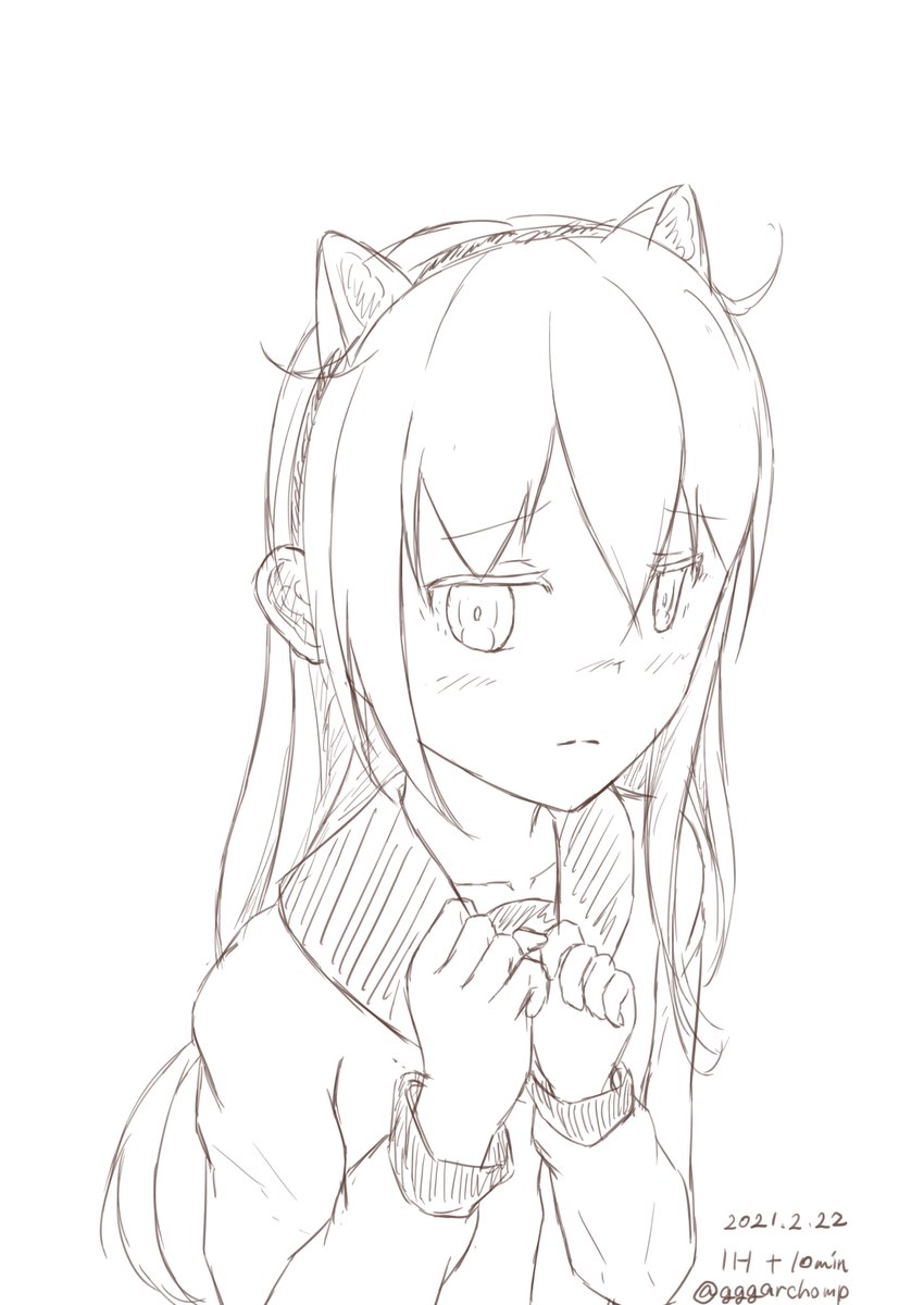 12 28 #艦これ版深夜の真剣お絵描き60分一本勝負 #艦これ版真剣お絵描き60分一本勝負_20210222 姉妹にネコミミを付けられた響ちゃん! 「流石にこれは…恥ずかしいにゃ……」 21/02/22 20:12