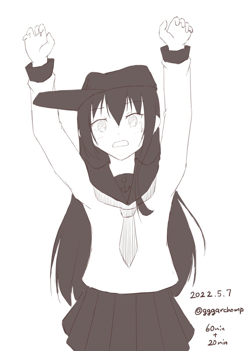 暁ちゃん進水日おめでとう🎉🎉🎉 これは小動物とエンカウントしてとっさに追い払おうとする暁ちゃん。(20分オーバー) #暁進水日2022 #艦これ版真剣お絵描き60分一本勝負_20220507