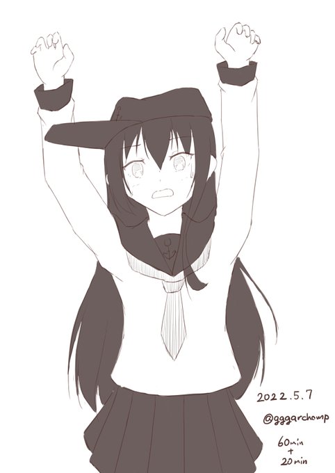 2 11 暁ちゃん進水日おめでとう🎉🎉🎉 これは小動物とエンカウントしてとっさに追い払おうとする暁ちゃん。(20分オーバー) #暁進水日2022 #艦これ版真剣お絵描き60分一本勝負_20220507 22/05/07 22:31