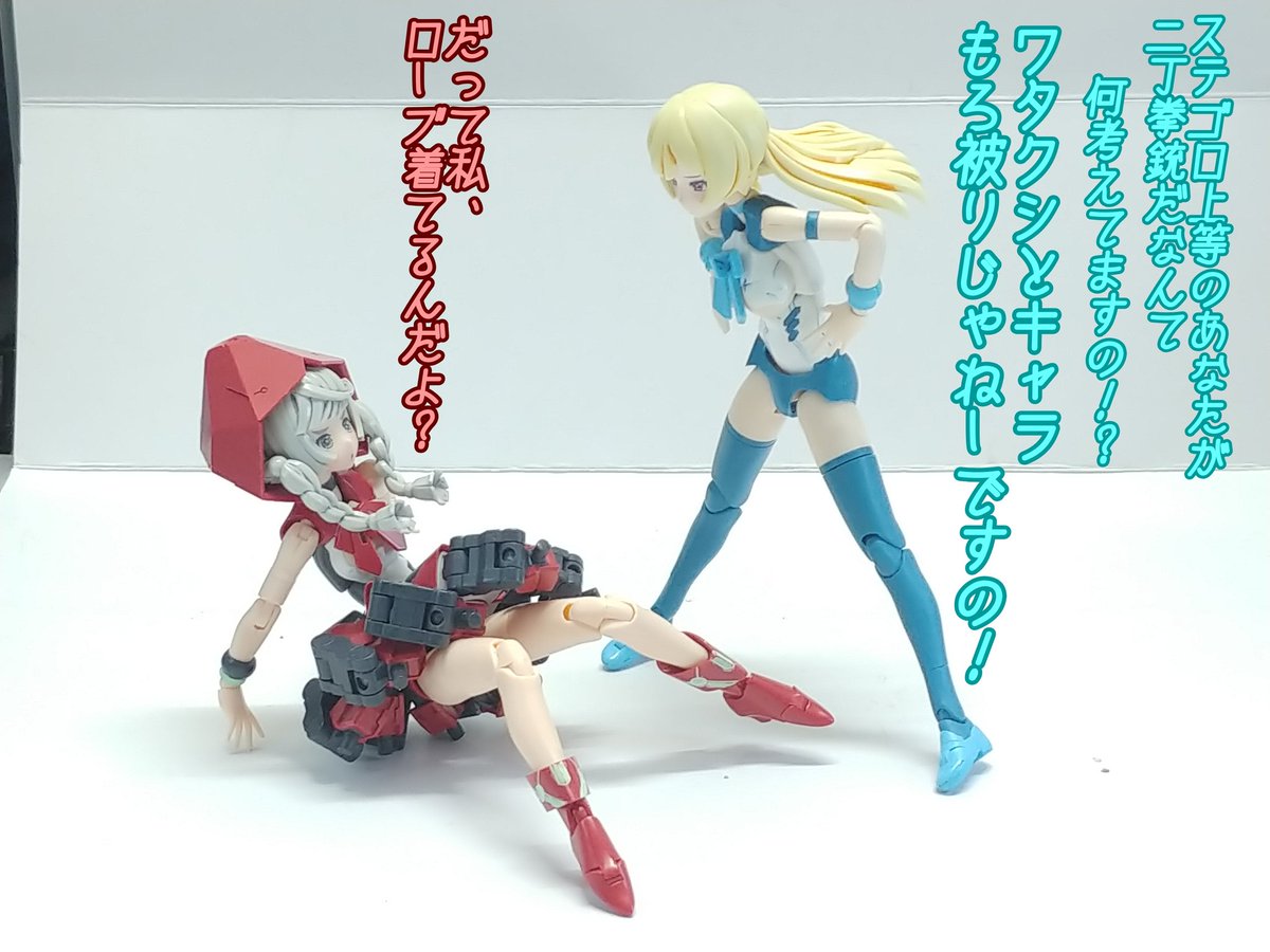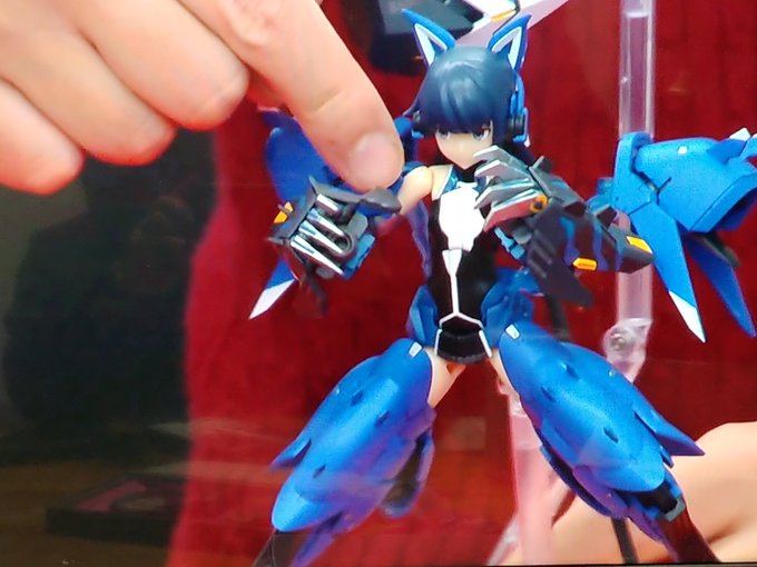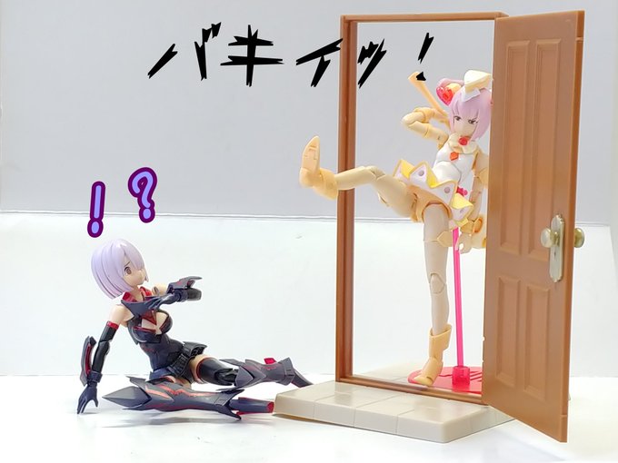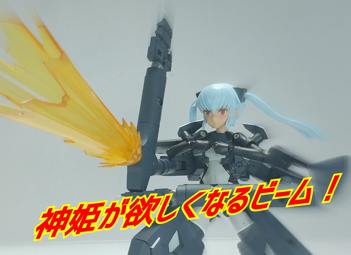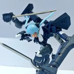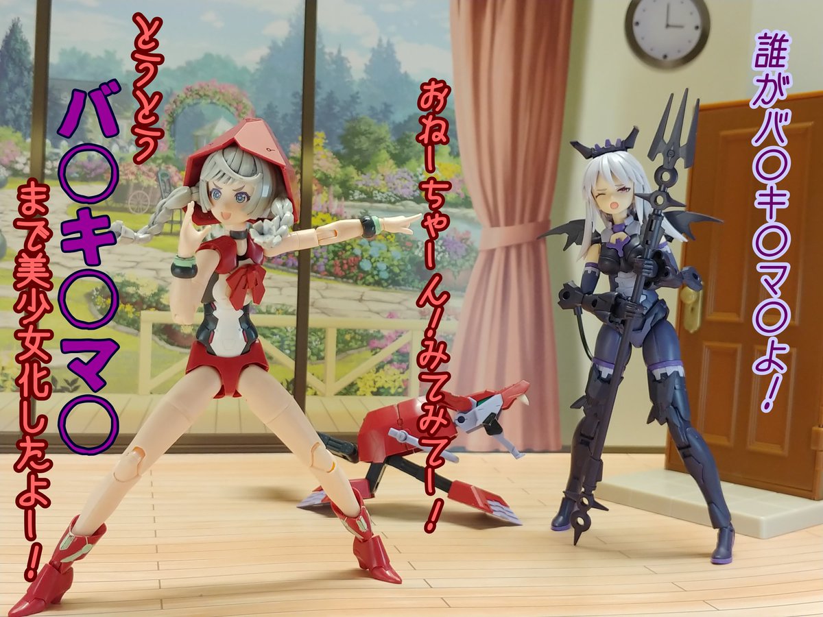 #グランマ予約開始をお祝いして赤ずきんまつり開催 #メガミデバイス メガミデバイスによく合う事で有名なエクスパンダーのガトリングブレード、旧版の小さいやつをリペイントして持たせてみた! なかなか似合うが、これ完全にグランマと被ってるなぁ…