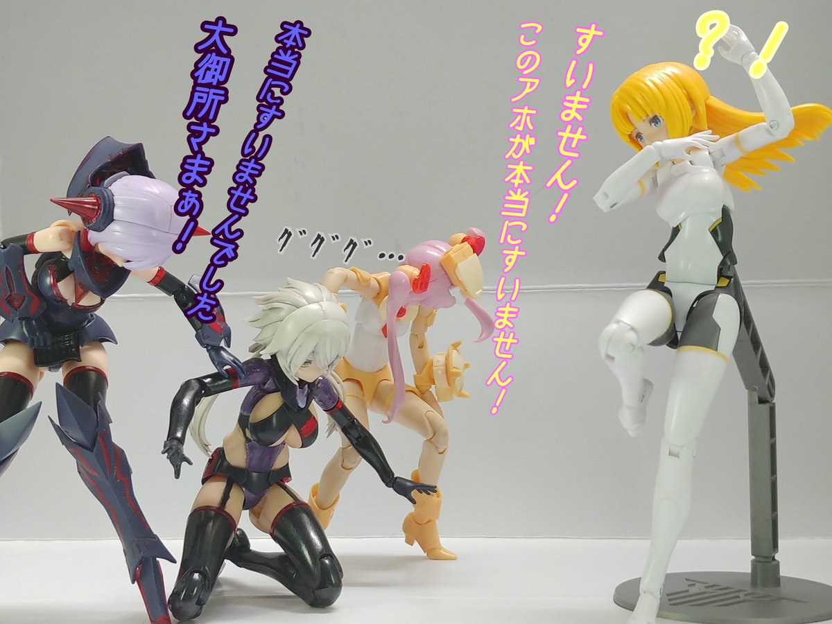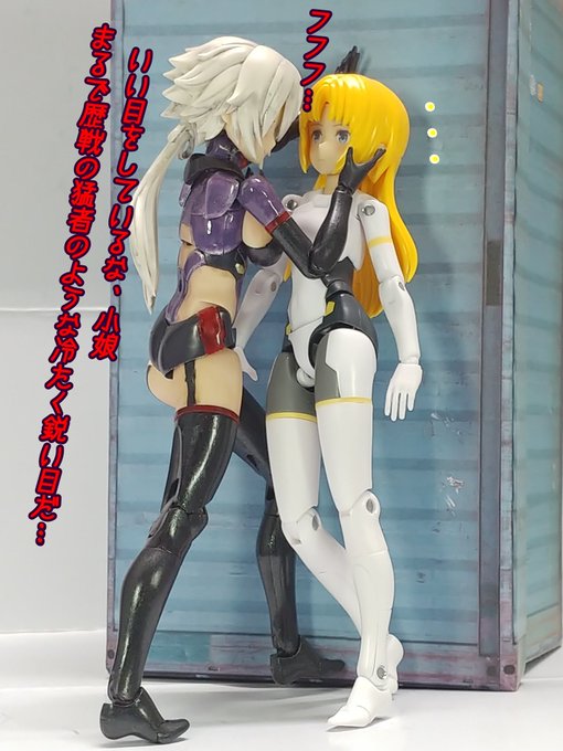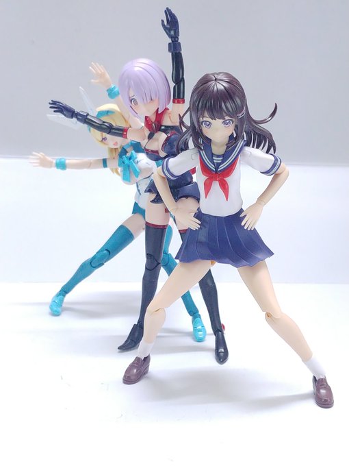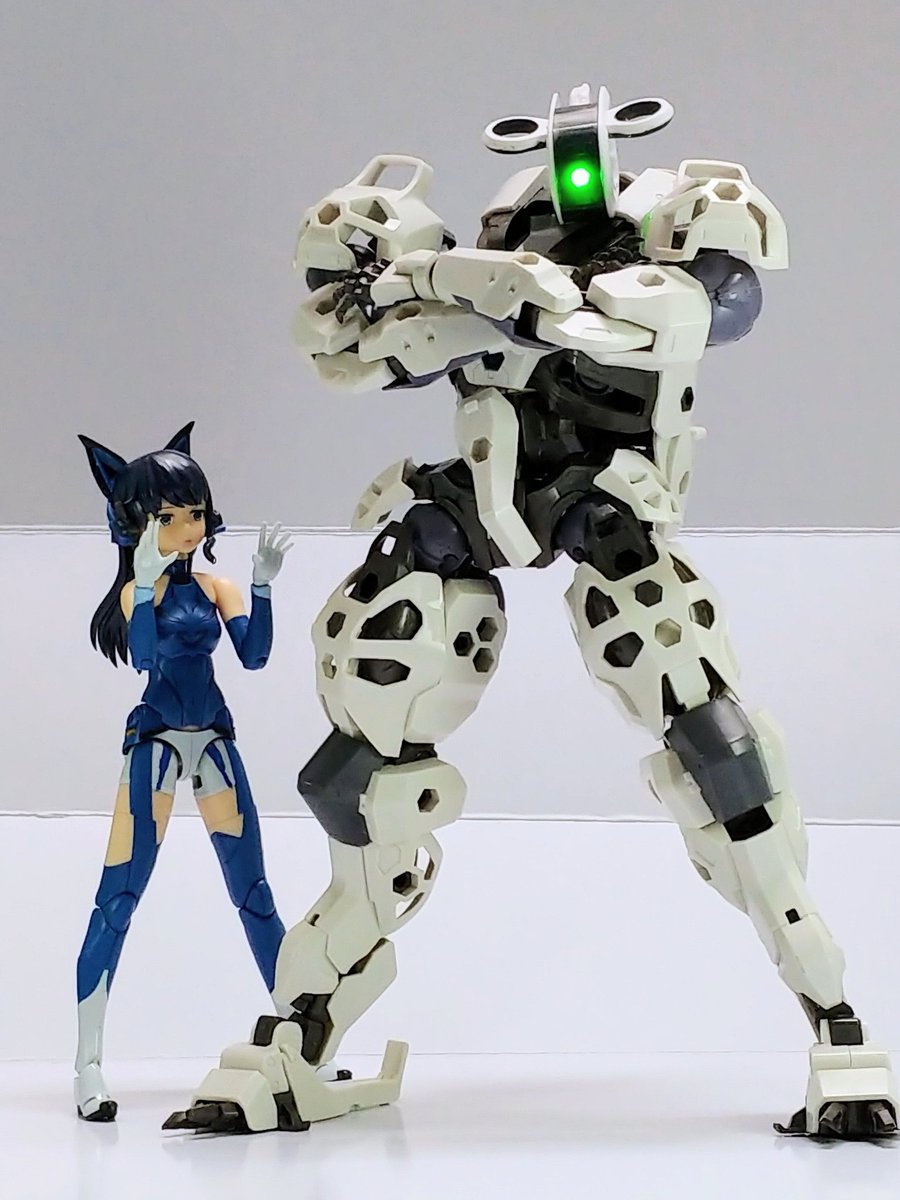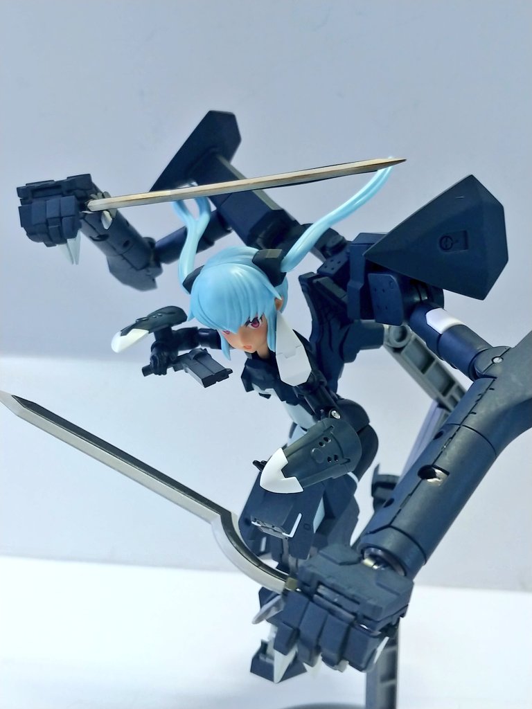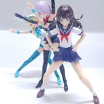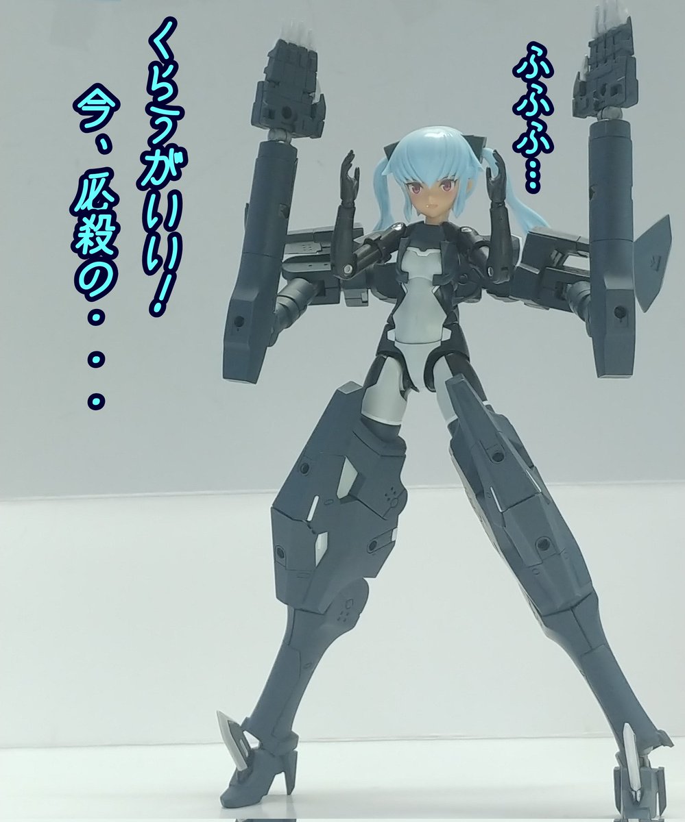 #グランマ予約開始をお祝いして赤ずきんまつり開催 #メガミデバイス メガミデバイスによく合う事で有名なエクスパンダーのガトリングブレード、旧版の小さいやつをリペイントして持たせてみた! なかなか似合うが、これ完全にグランマと被ってるなぁ…