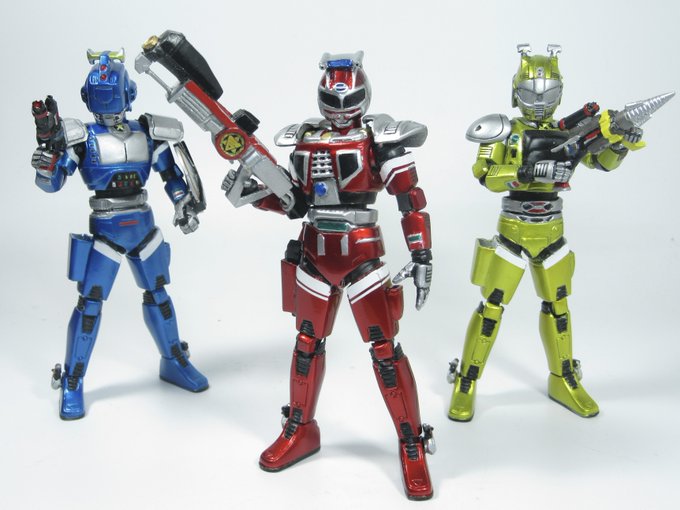 「これは明日の地球に愛と優しさを求めた、特別救急捜査隊の物語である」 S.H.フィギュアーツ改造で「特捜エクシードラフト」よりシンクレッダー・ドラフトブルース・ドラフトキースを作りました。 #エクシードラフト #シンクレッダー #ニチアサフィギュア改造部