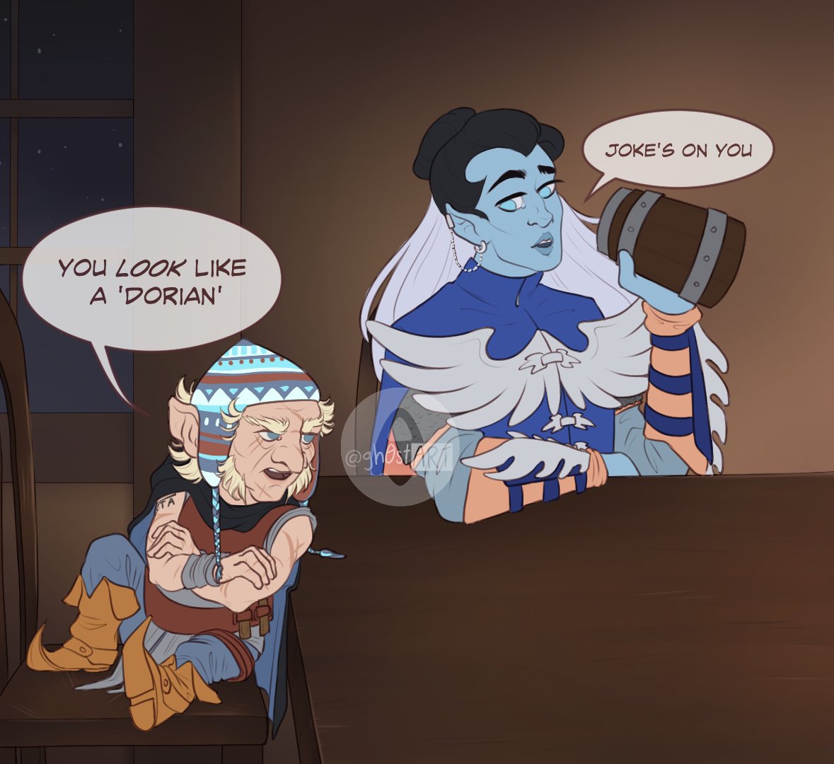 I like to imagine Dariax felt so fancy in Dorian's outfit that sometimes when he's alone he puts it back on and poses in the mirror for a while. #ExandriaUnlimitedSpoilers #ExandriaUnlimited #ExU #criticalrolefanart #ExandriaUnlimitedFanart