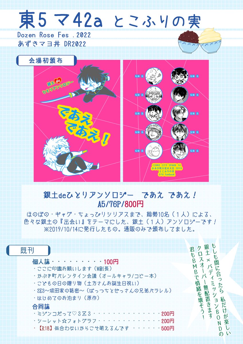 20 46 やっとこさ会場頒布します。既刊しかないですがもしよければ寄ってやってください~。 22/12/07 22:08
