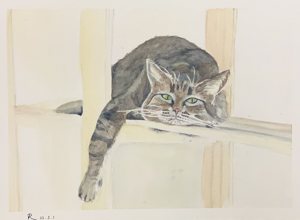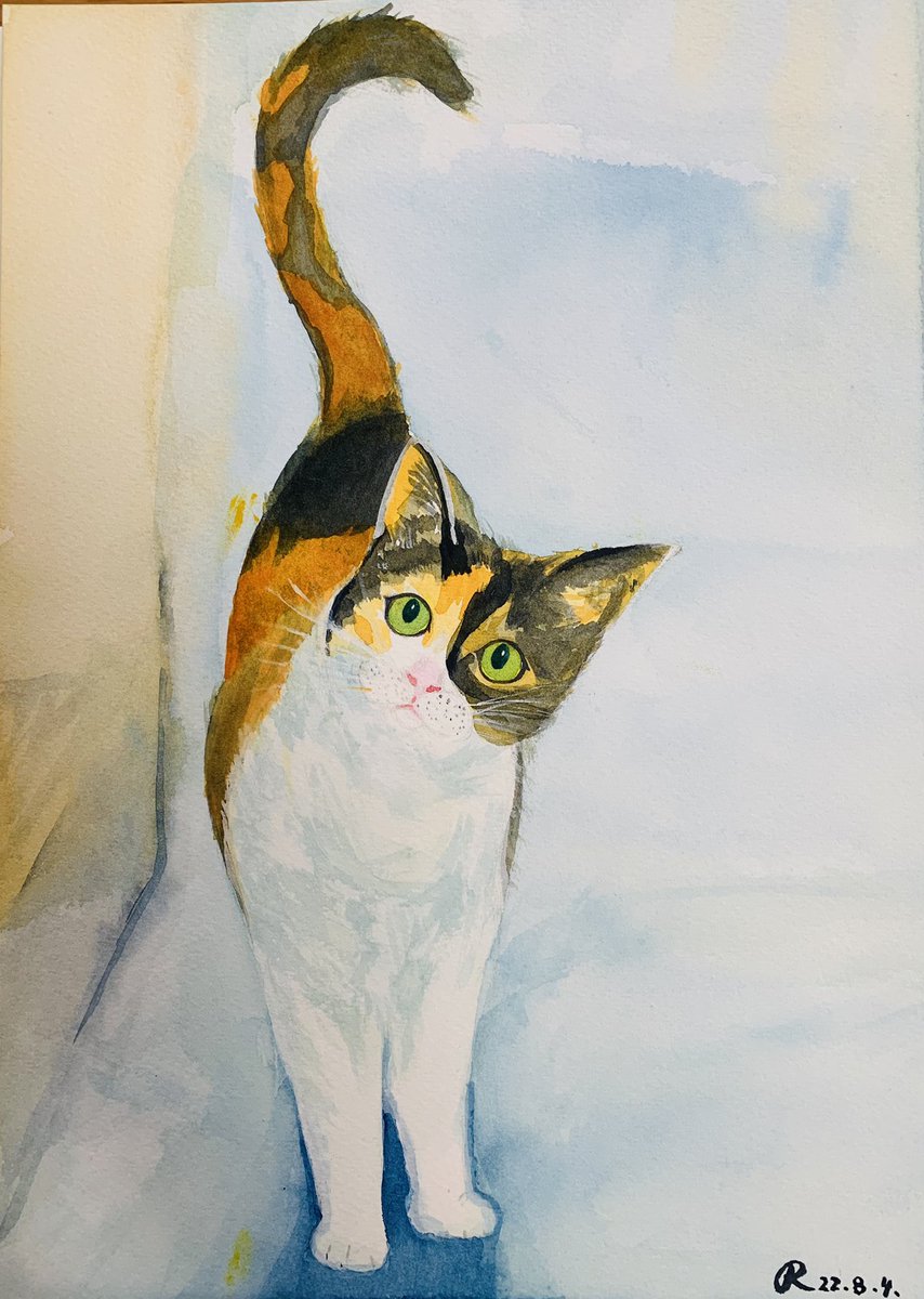 3 53 終於涼快一點兒了。 繼續沈迷於毛孩🐈。 (素材來自網圖) #透明水彩 #水彩画 22/08/05 08:51