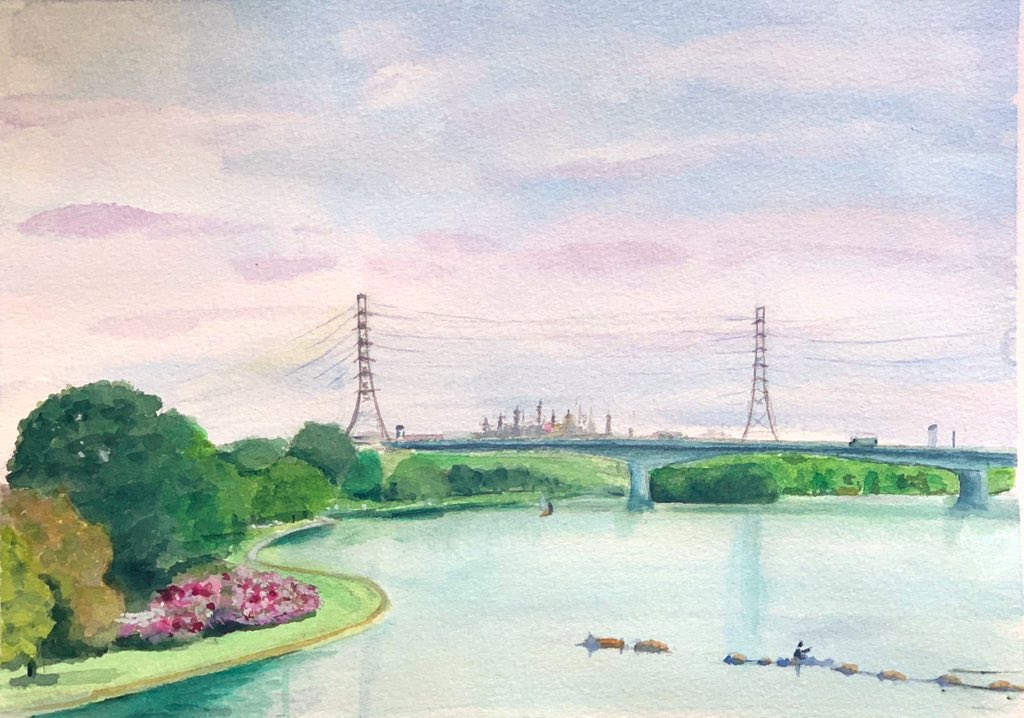 薔薇が難しいよね、またチャレンジします😆。 玫瑰花真難畫呀,下次再努力吧。 #水彩画 #watercolor #代々木公園の薔薇