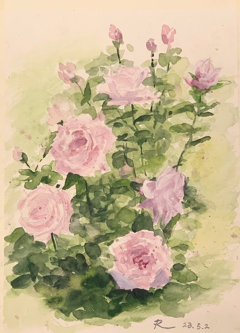 0 1 薔薇が難しいよね、またチャレンジします😆。 玫瑰花真難畫呀,下次再努力吧。 #水彩画 #watercolor #代々木公園の薔薇 23/05/04 16:03