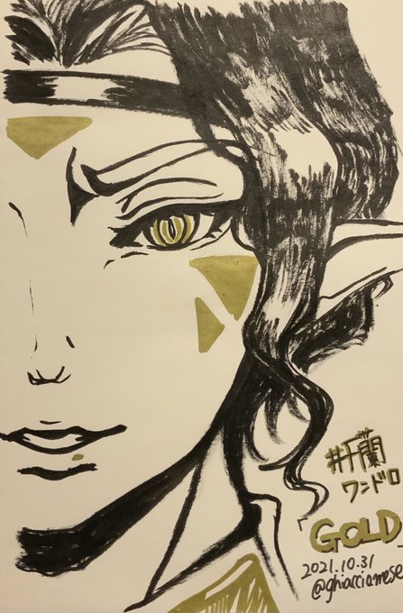 11 33 #F蘭ワンドロ お題「GOLD」 金鋼族から。写真だと目立ちにくいけど金色のペン使ってます✨ 21/10/31 21:43