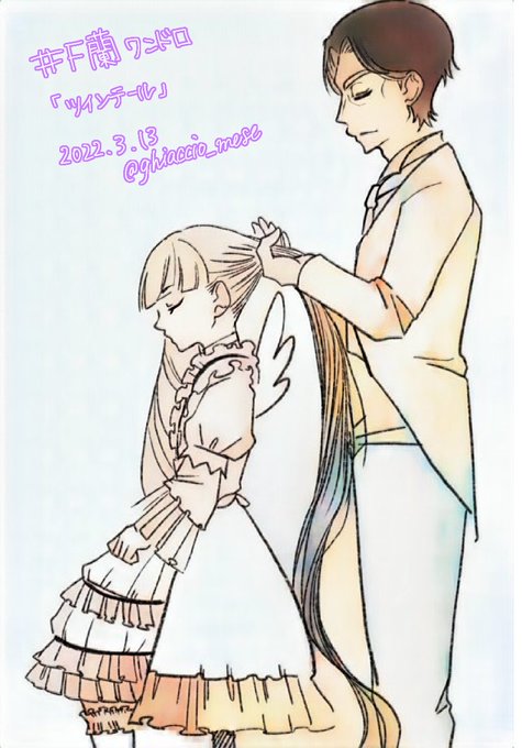 10 36 #F蘭ワンドロ お題「ツインテール」 女王様の髪は豊穣さんがいつもしてくれてるんだろうなって思ってる。 あと今回構想下書きに時間かかったので自動彩色使ってみたんですが女王様の髪色がめちゃくちゃいい感じに出ました。 22/03/13 20:37