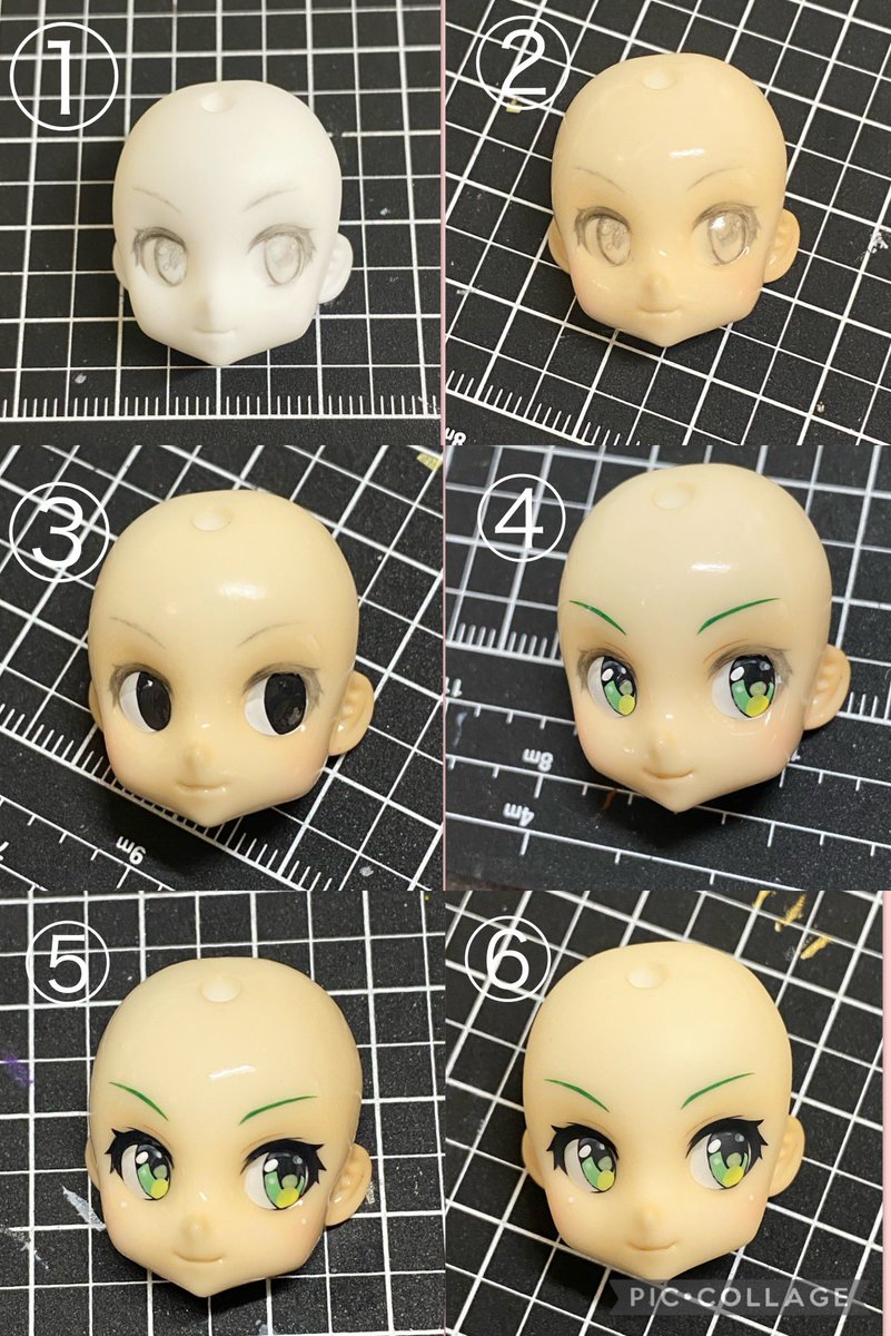 今回はお顔を下書きから書きました。 ①下書き ②肌&ちーく ③黒目&白目 ④黒目の中身 ⑤まつ毛 ⑥つや消し←完成♪ キット自体の塗り始めから完成まで6日です☆ サクッと可愛くできちゃうミクさんを、よろしくお願い致します(*^^*) twitter.com/t_kashi2/statu…