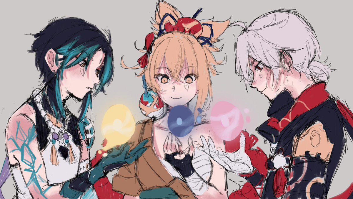 Wip of me and my friends swelled with our mains @Ravenite96 #digitalartists #commisionsopen #Commission #Genshin #genshinimpactfanart #kazuha #xiao #yoimiya