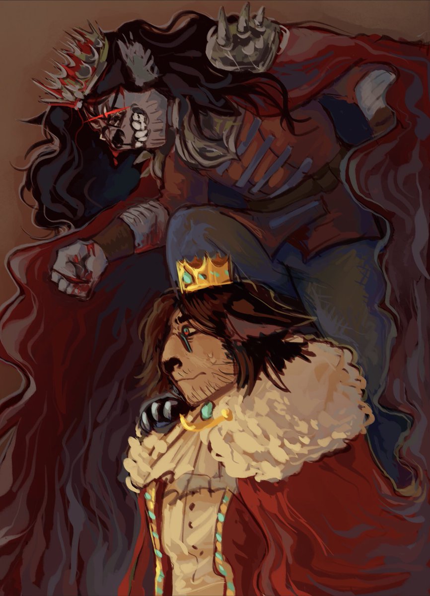 spoilers, blood / / / THE KING IS DEAD! LONG LIVE THE KING! and thank you to @renthedog for bringing such a great character to life :^D!! #hermitcraftfanart #hermittwt