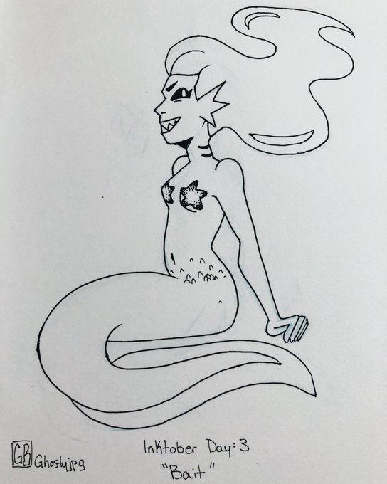 #inktober day 3- “Bait” 🐟🧜♀️ i really love the idea of spooky mermaids/sirens luring men to their deaths 😈 #inktoberday3 #inktoberbait