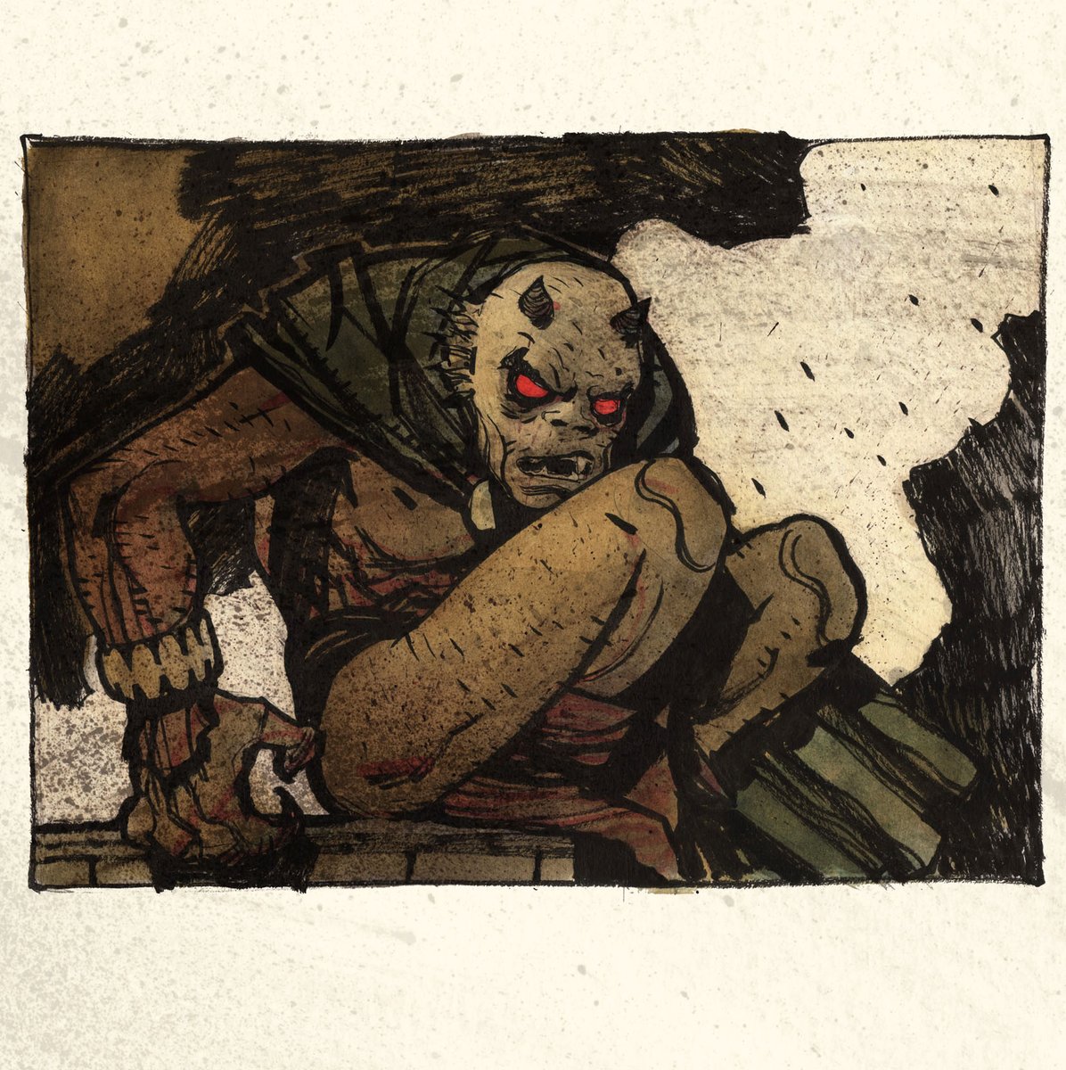 ETRIGAN!! Old ink+watercolor drawing with some new digital textures #etrigan #jackkirby #ink #watercolor #digitaltextures
