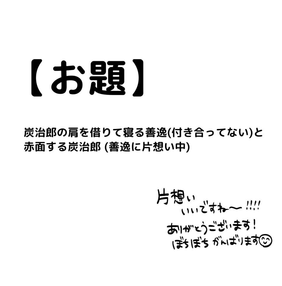 2021/3/28に発行した炭善本を、支部にて全ページ公開しました。 炭が善に告白するお話です。全年齢。 どうぞよろしくお願い致します! (ツイートに表紙+冒頭3ページ載せております🙏) pixiv.net/artworks/10158…