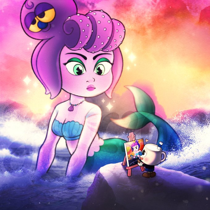 MerMay Post 1: Cala Maria, the number one sea beast! 🐙🐚💙 (This is NOT Cala Maria x Mugman art! Mugman simply has a precocious crush! ❤) #CupHead #Mugman #CalaMaria #ArtistOnTwitter