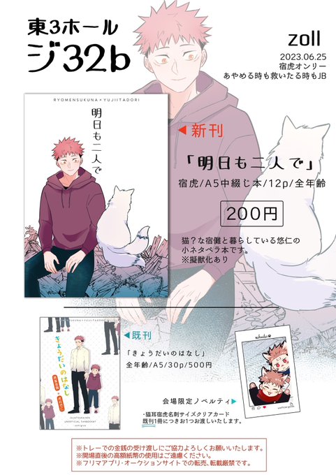 50 359 [6/25 新刊サンプル](1/2) 宿虎/全年齢/A5中綴じ本/12p ※擬獣化あり イベント後余りが出た場合は通販します🙇♂️ pixiv.net/artworks/10916… 23/06/19 22:10
