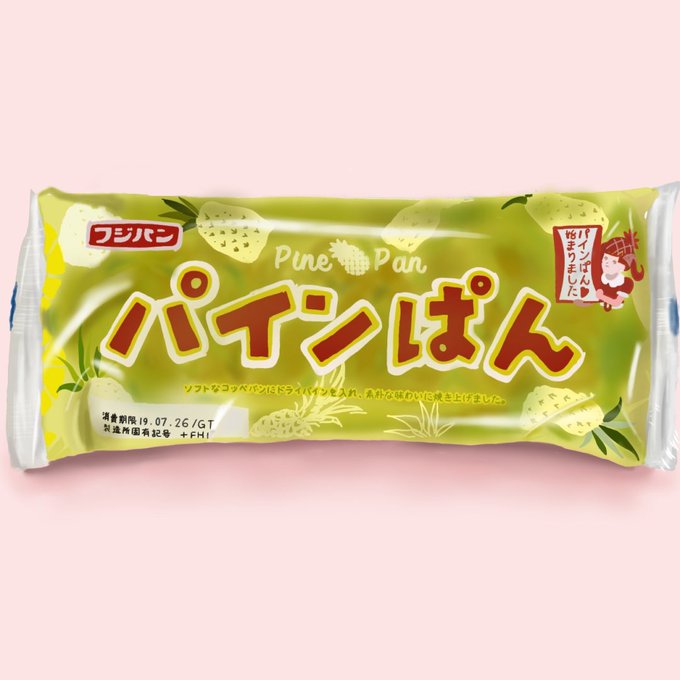 今年もやってきたパインぱん🍍💕 早く食べたい🤗 #パインぱん #フジパン #夏の創作クラスタフォロー祭り #絵描きさんと繋がりたい 毎年パッケージデザインが変わるパインぱん。右上の女の子はパインぱんガールと言って、こちらの女の子のデザインも毎年変わります。 ↓こちらは2019年のもの