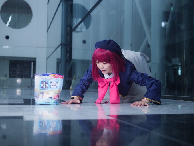 #コスプレ ひしゃたい:あめちゃ @amecha_173 きゃら:有馬かな(推しの子) ろけーしょん:#コスメルinコスモタワー 元重曹を舐める子役