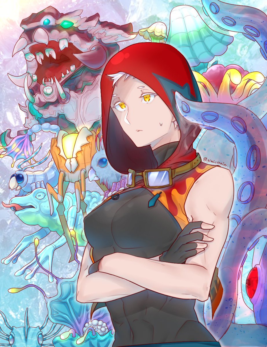 🌋 ミストとクリーチャーのゆかいな仲間達を描きました。楽しかったです☺️ #テーマポート擬人化 #ももちのえ #センターオブジアース