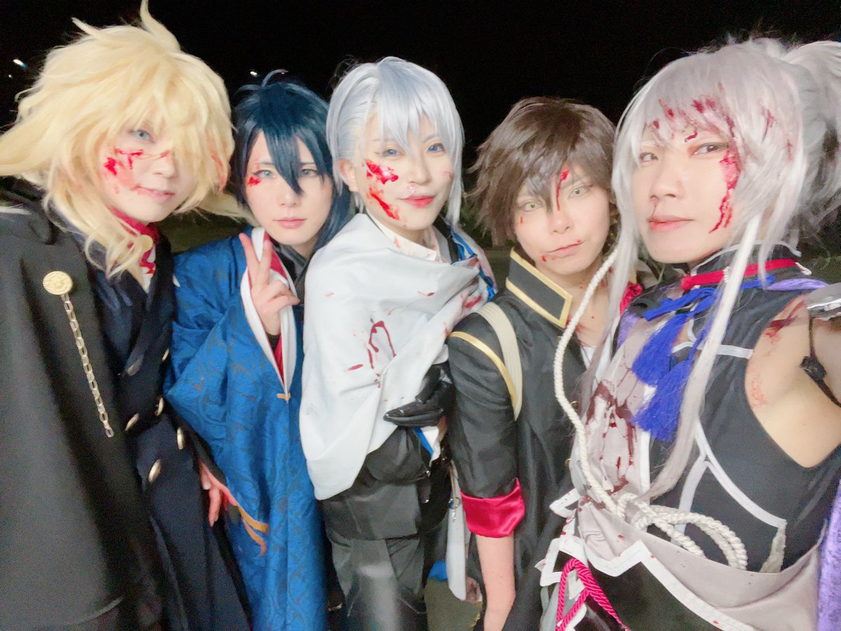 6 21 [cos]遅ほー⚠血糊注意⚠️ 昨日はコスナビさんの野焼きイベントに行ってました!°˖✧◝(⁰▿⁰)◜✧˖°楽しかった!!凄く疲労金平糖!!!! 三日月極=銀 無骨くん=イツキさん(@ituking00) からちゃん=浅葱さん(@ku_asaNO1528) ノリムネ=黒兎さん(@kuroto_02) ちょぎ=夏野さん(@sahyaku) 23/04/17 12:51
