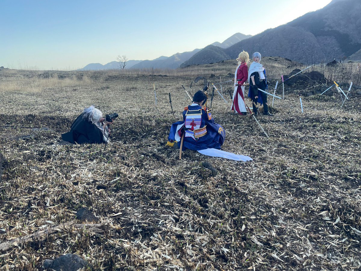 [cos]遅ほー⚠血糊注意⚠️ 昨日はコスナビさんの野焼きイベントに行ってました!°˖✧◝(⁰▿⁰)◜✧˖°楽しかった!!凄く疲労金平糖!!!! 三日月極=銀 無骨くん=イツキさん(@ituking00) からちゃん=浅葱さん(@ku_asaNO1528) ノリムネ=黒兎さん(@kuroto_02) ちょぎ=夏野さん(@sahyaku)