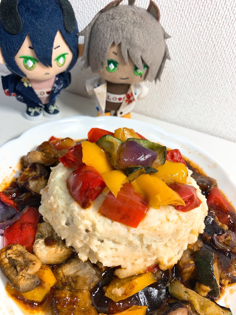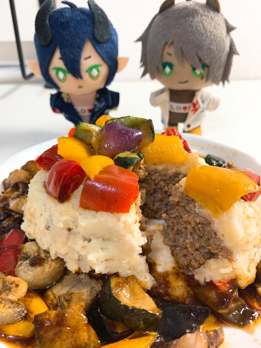 レオナさん改めてお誕生日おめでとう〜〜〜〜〜〜〜!!!!!🥳🥳🥳🎉🎉🎉🎉 レオナさんはお肉好きだからね!!!肉ケーキにしたよ!! ケーキに見えますように😂✨ #レオナ・キングスカラー誕生祭2021