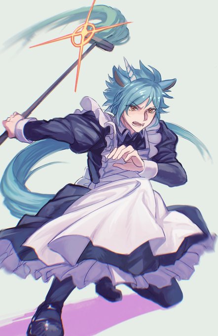 ※女装注意🙇♀️メイド服な🦄落書き… 「これが俺の黄金モップ捌きだ!」(?)