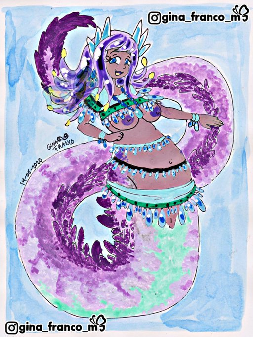 continuando con el #mermay en mis ilustraciones no solo veran las sirenas tradicionales con cola de pez tambien otras con cola de serpiente. lei que en mexico las sirenas tambien tienen cola de serpiente. #mermay2023 #originalcharacter #sirena #prehispanico #OC