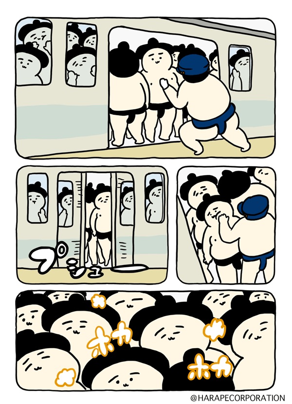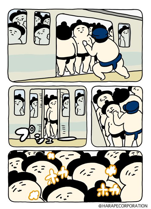 満員電車 【おすもうさん拾ったDLはこちら】 osumousan.harapeco.okinawa/dl/ #相撲 #おすもうさん拾った #漫画 #イラスト