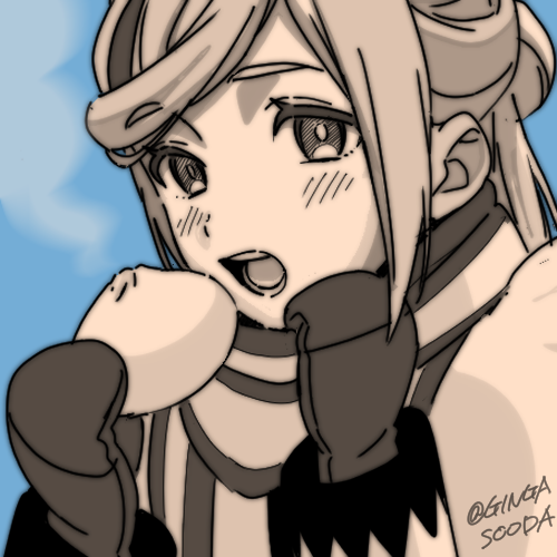ポケモンSVの肉まん食べるとこガン見されて恥ずかしがってるグルーシャ #イラスト #イラスト好きな人と繋がりたい #絵描きさんと繋がりたい #私の絵柄が好みって人にフォローされたい #ポケモン #グルーシャ