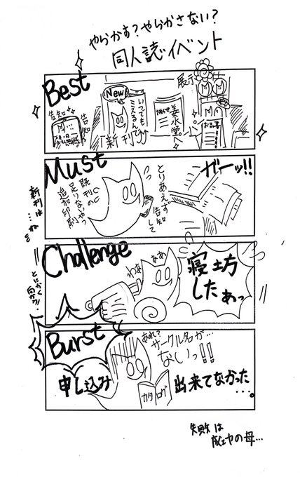 0 2 過去に描いた物ですが、コミケ&大崎のタイミングで載せときます😃 切れてるタイトルは、「やらかす?やらかさない?同人誌イベント」 #ジンジャー4コマ #コミケ102 #おもバザ大崎 #大崎コミシェル #絵描きさんと繫がりたい 23/08/12 22:04
