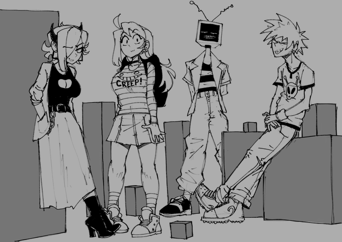 Some of my OCs!! We got Thenia, Liz, Marcy AND Bullet Guy Man Dude and probably many more I constantly forget to draw :^) Not sure who to tag so share ur own characters here!! twitter.com/twosipsofbleac…
