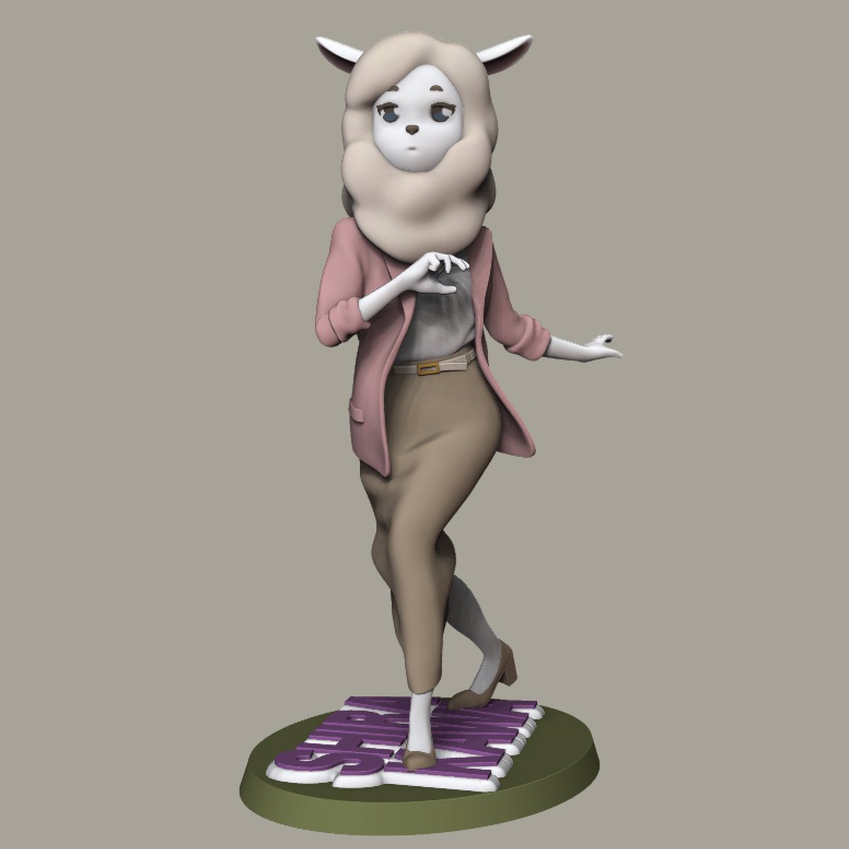 カポエイラをたしなむ白川さん、引き続き作ってます🦙 ガワはだいたいできました! 出力前提で台座あり。 最近ようやくオーディオドラマも聴きました。次は誰作ろう〜 #オッドタクシー #OddTaxi #zbrush #fanart