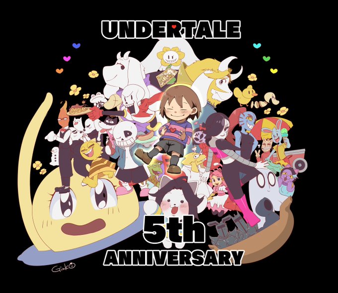 アンダーテール五周年おめでとう! ケツイを抱いた分、いっぱい考えさせられました。 もう二度とプレイは出来ないけど、それでも一生忘れられない私の思い出となった、大切な宝物のようなゲームです。 #happybirthdayundertale #Undertale五周年記念イラスト