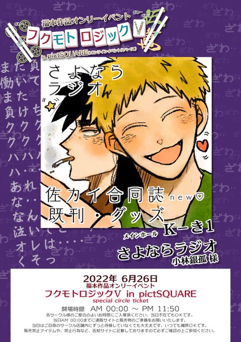 6月12日東京流通センター(TRC)【ギャンブラーズ・ハイ21】にサークル参加します! youyou.co.jp/only/gambler/2… ギャンハイ21参加します〜!えれかさん(@errecurry)と合同サークルです!佐カイ本2人で出します❣️やったー!!どうぞよろしくお願い致します〜!
