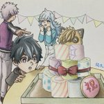 友達の誕生日イラストを描きました!隠神さんにはマジパンポジションで参加して貰いました🐾 #怪物事変 #色鉛筆