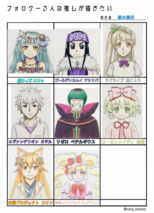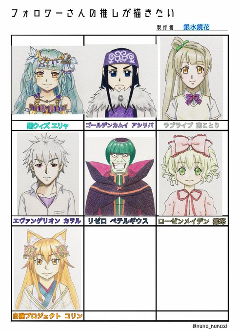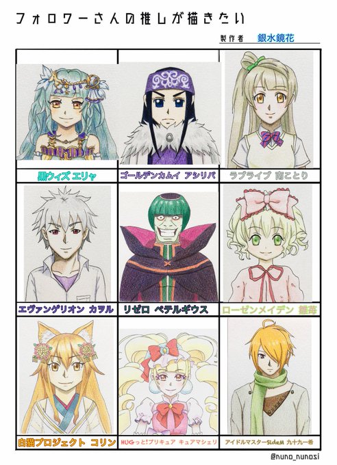 #フォロワーさんの推しが描きたい #色鉛筆 9キャラ全て完成!だいぶ時間かかりましたが、とても楽しかったです♪リプ下さった方々ありがとうございました(´▽`)