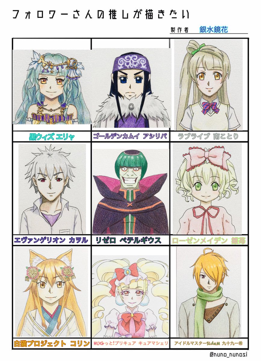 2 6 #フォロワーさんの推しが描きたい #色鉛筆 9キャラ全て完成!だいぶ時間かかりましたが、とても楽しかったです♪リプ下さった方々ありがとうございました(´▽`) 19/11/27 21:58