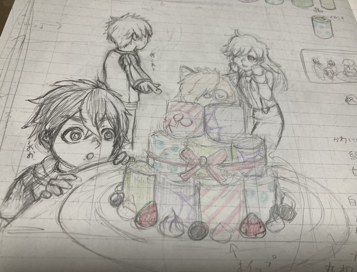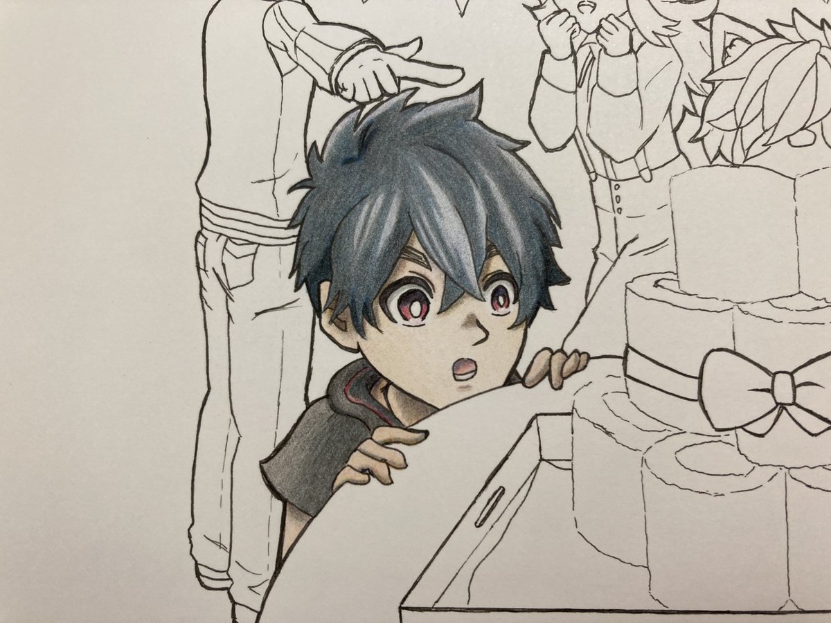 1 14 友達の誕生日イラストを描きました!隠神さんにはマジパンポジションで参加して貰いました🐾 #怪物事変 #色鉛筆 21/08/18 15:37