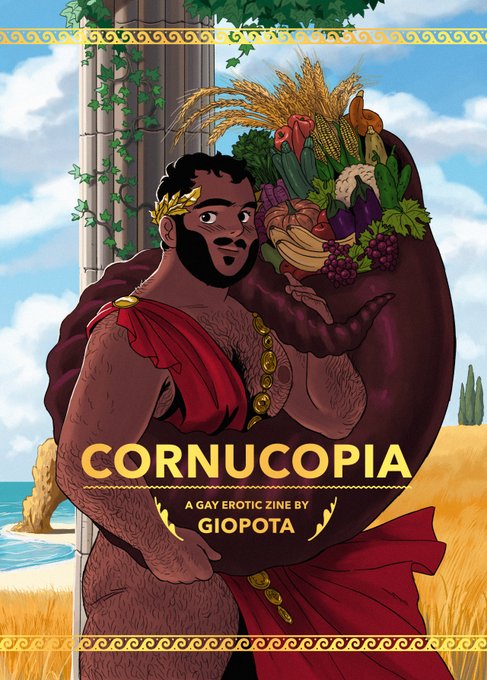 ꧁• 𝐂𝐎𝐑𝐍𝐔𝐂𝐎𝐏𝐈𝐀 •꧂ A collection of five lustful, gluttonous, introspective, body positive and very gay short comics is finally back on sale along with new postcard/vinyl size prints and risograph prints! giopota.bigcartel.com