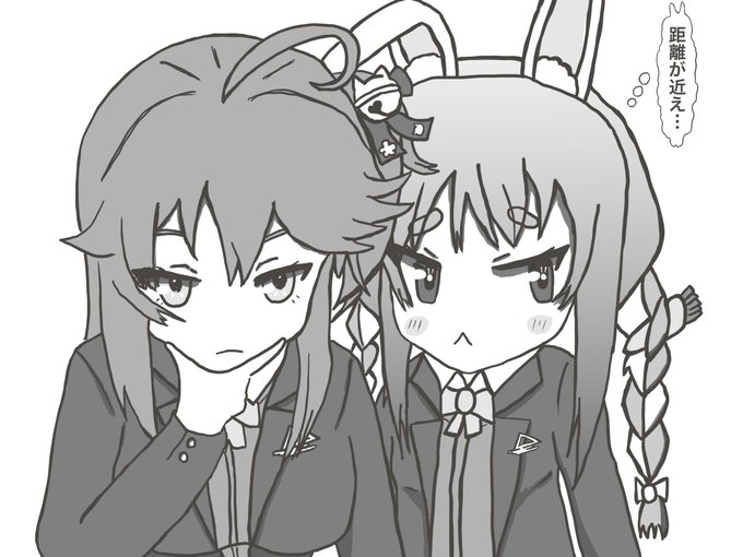 四宮桜:情報収集に夢中 水田兎月:カメラ持ち=新聞部or写真部? つまり、ぺこみこの可能性があるって事ですね!!! →桜が兎月の撮った写真を眺めているところ #miko_Art #ぺこらーと #hololiveERROR