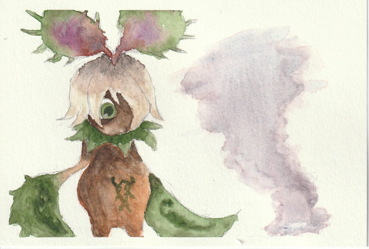 9 25 森羅の水先 リーフとナゾノリーフ。 (外部から失礼します) #リンクスお絵描き部 #水彩画練習中 #森羅の水先リーフ #ナゾノクサ 22/10/30 19:24